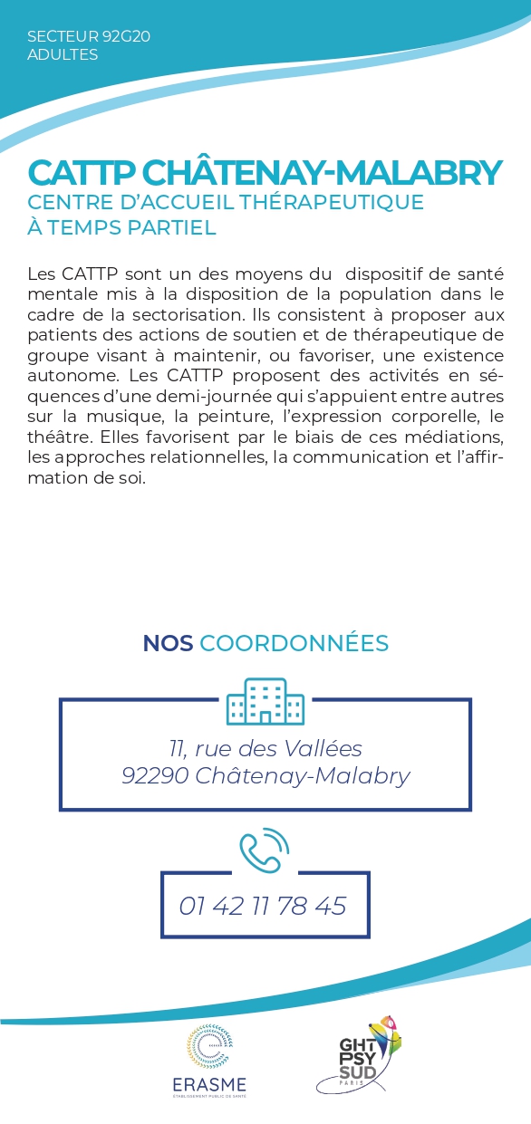 Les CATTP sont un des moyens du dispositif de santé mentale mis à la disposition de la population dans le cadre de la sectorisation. Ils consistent à proposer aux patients des actions de soutien et de thérapeutique de groupe visant à maintenir, ou favoriser, une existence autonome.