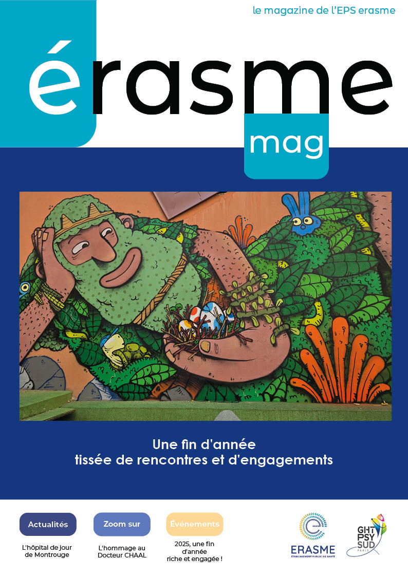 Erasme Mag est le journal interne de l’EPS Erasme. Il retrace les activités de l’établissement envers les patients (expositions, activités culturelles, concerts, projections de films…) et le personnel (colloques, réunions, rencontres, activités culturelles comme débats d’Erasme ou Cinerasme…), donne des informations sur les activités et les divers métiers, fait le point sur la qualité et la gestion des risques et explique le fonctionnement des divers services.